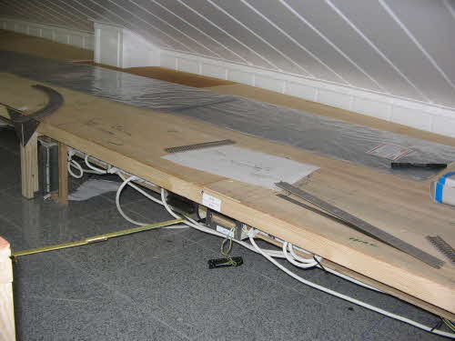 Nachdem feststand wie der Fluss verlaufen soll, wurde der Flussverlauf genau auf der Modellbahnplatte angezeichnet.