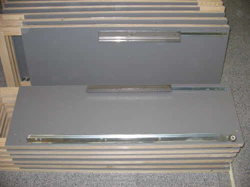 Unter dem vorderen Bereich der Anlagen soll man (wie Schubladen) Dioramen herausziehen können. Dafür wurden hier die Führungsschienen montiert. (Dioramen sind kleine, aufgebaute Ausschnitte aus z B. Landschaften) |